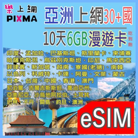 10GB亞洲漫遊上網eSIM,屬於10天使用總流量的計算方式,總流量用完會降速吃到飽